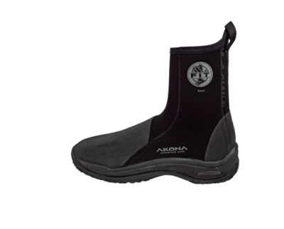 The AKONA Fit high-top boots have a “sneaker-like” molded sole. With arch support the AKONA Fit boots are both comfortable and durable. Nylon webbing runs vertically up the back of the boot to provide more durability and strength when pulling the boots on. The #5 YKK Zipper is durable and salt water safe.