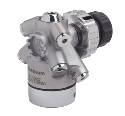 As a diver moves underwater they quickly learn that streamlined gear is critical to diving efficiently and conserving gas. One of the main features of the high-performance Airstream Evoque is the streamlined hose routing of the first stage. The low-pressure ports are angled 30-degrees down and 23-degrees forward to allow hose routing directly over the shoulders keeping the configuration close to the diver’s body. Additionally, the high-pressure ports are angle down 45-degrees for minimal resistance and keeping the SPG as close to the divers’ side as possible. The high-performance Airstream Evoque delivers the industry’s finest work of breathing (WOB) of .8 joules per liter.