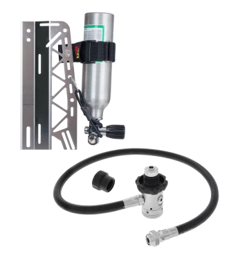 Our Drysuit Inflation Package comes with everything you need to inflate your drysuit using off-board gas.
