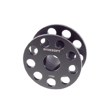 The spool is made from delrin, which does not lose its mechanical properties in water – in contrast to polyamide. The edges in the place of manipulation are rounded and the hole in the sidewalls have adjusted edges so that a cord does not get stuck.