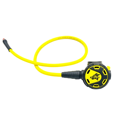 The HOG Second stage gives you ergonomic one-handed access to both the inhalation effort knob and the dive/predive venturi adjustment lever, making perfect regulator tuning easy. The most important feature of the HOG technical second stage is the amazing breathing performance! The metal gas tube and precision components of this second stage allow for precision tuning for extremely easy breathing while also retaining heat and moisture from exhaled breath. This provides increased resistance to freezing in cold water and less dry mouth. The dual diver-adjustable features allow for condition-specific tuning during each stage of the dive.