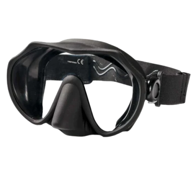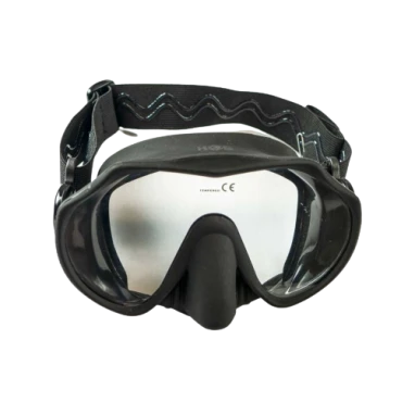 HOG Low volume Frameless Mask has a great field of view in a low profile frameless design. Comes with a comfortable adjustable elastic strap similar to Ski Goggles for a comfortable fit, and the strap includes a snorkel holder.