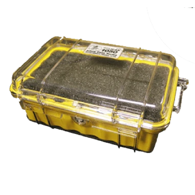 EII Peli-box with foam insert to house. Dimensions: 6 9/16″ x 3 15/16″ x 2 3/4″