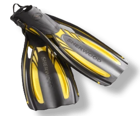 Lightweight, high performance dual-composite fin blade featuring full-length power rails and a central flex channel. Open heel foot pocket is held comfortable and secure with our unique, highly stretchable silicone heel strap. The NEW ELITE fin from Sherwood is the elite choice for power and performance.